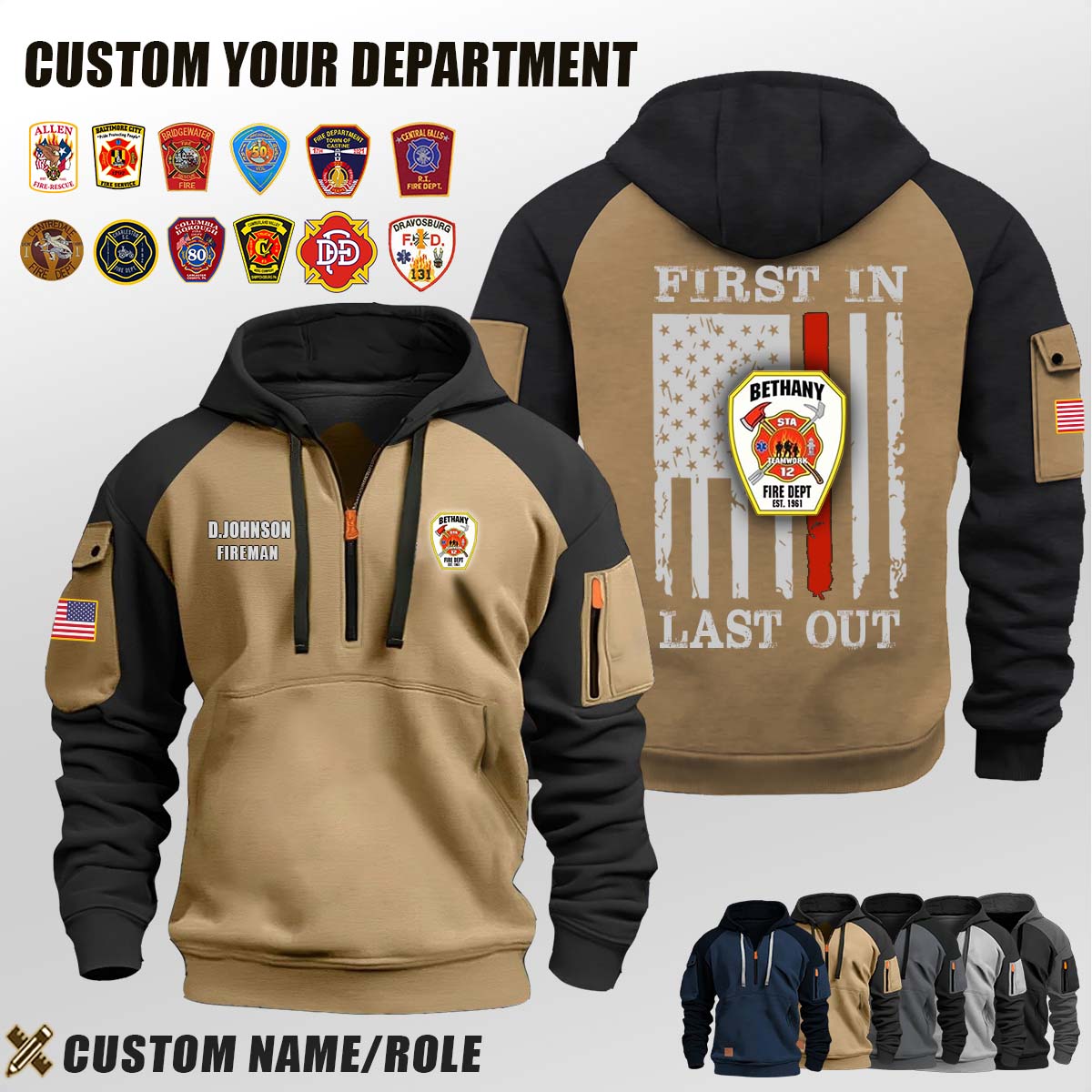 Introducing Bethany Rural Fire Department Station 12 NC_First In Last Out Halfzip Hoodie tailored specifically for men who appreciate both warmth and fashion.