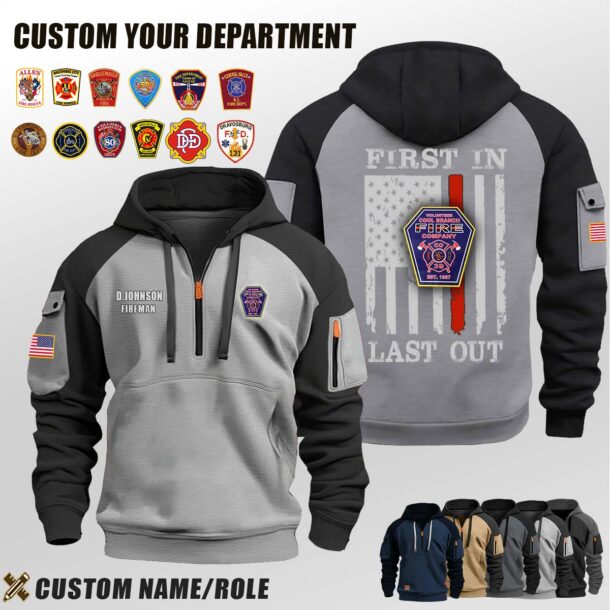 Introducing Cool Branch Volunteer Fire Company VA_First In Last Out Halfzip Hoodie tailored specifically for men who appreciate both warmth and fashion.