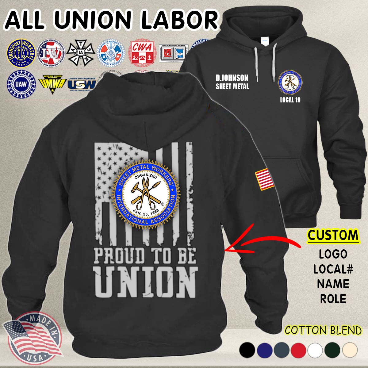 Custom Union Labor_Proud to be Union Cotton Hoodie