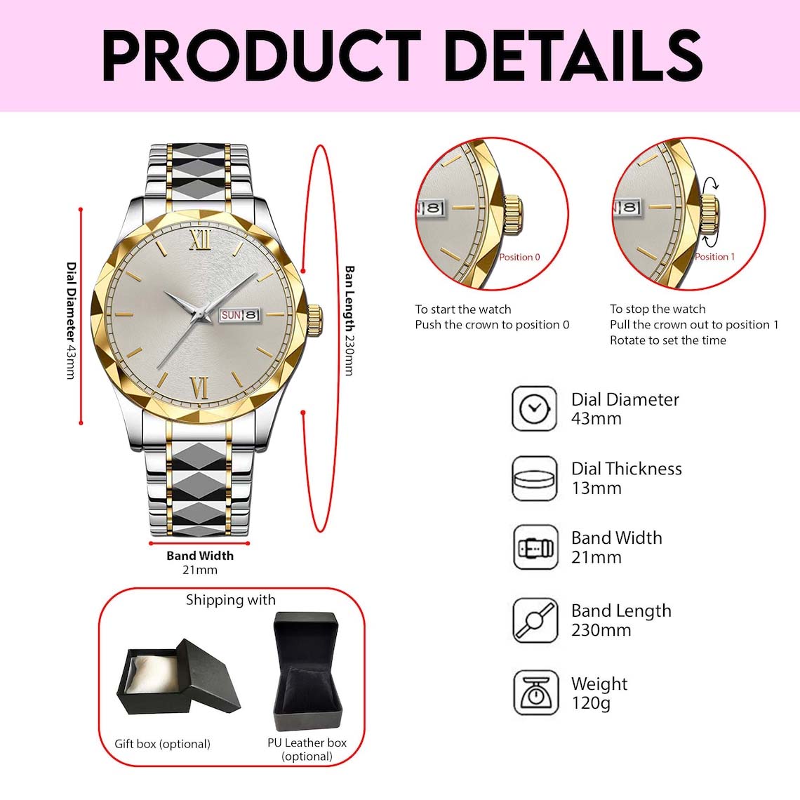 • Watch Diameter: 43mm