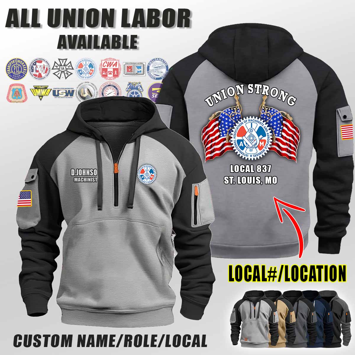 Custom Union Labor_Union Strong Dual Flag Halfzip Hoodie