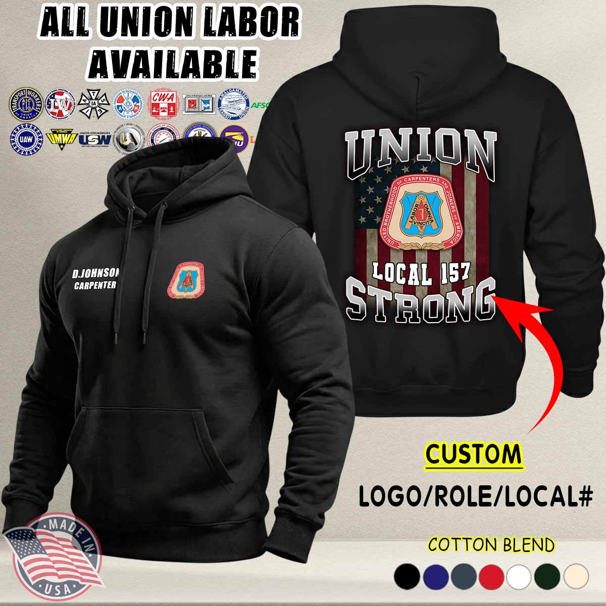 Custom Union Labor_Union Strong Ver 3 Cotton Hoodie