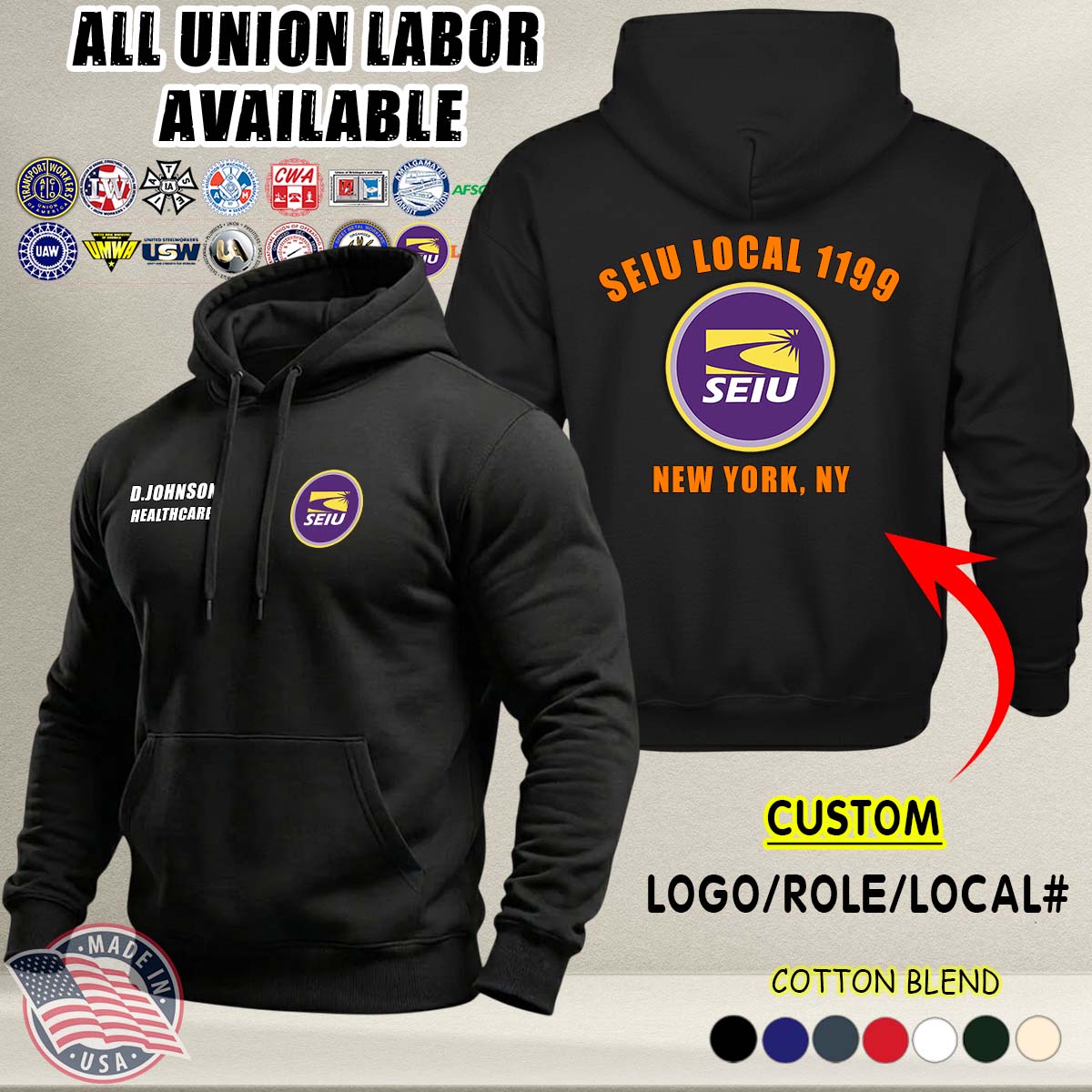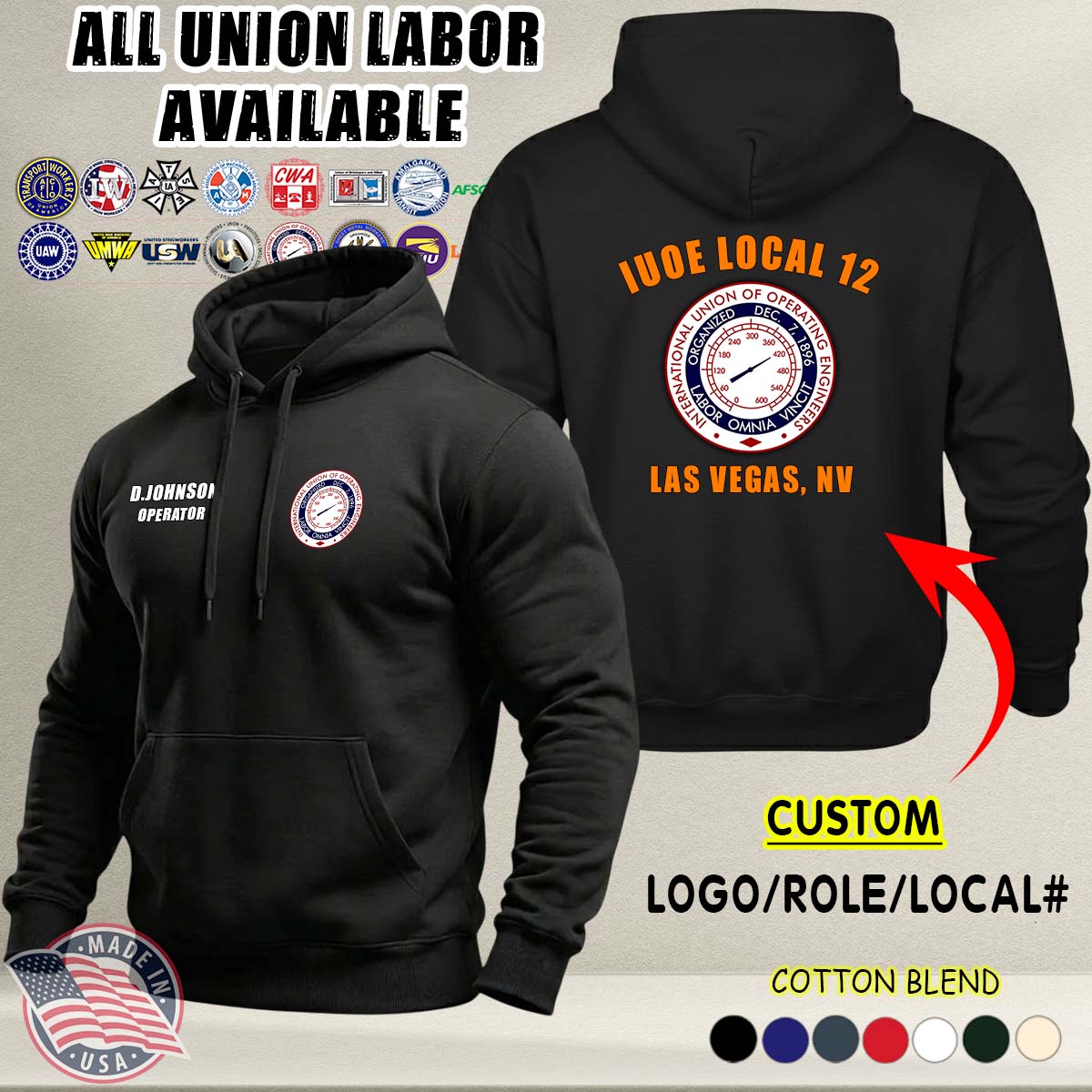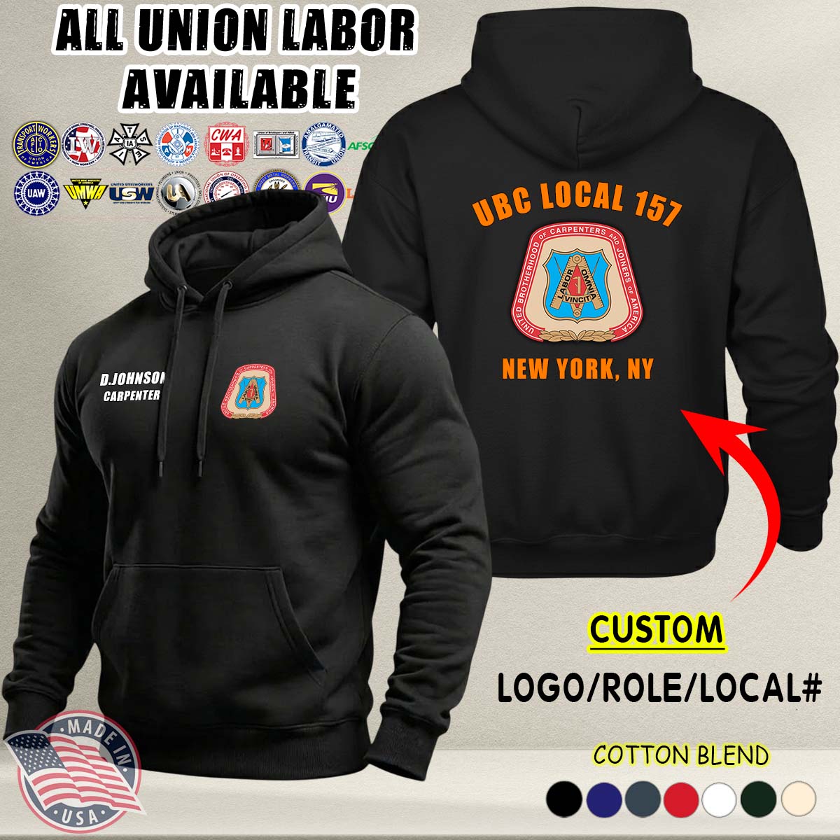 Custom Union Labor_Ver 2 Cotton Hoodie