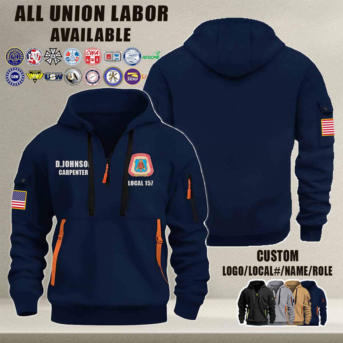 Custom Union Labor_Premium Quarter Zip Hoodie