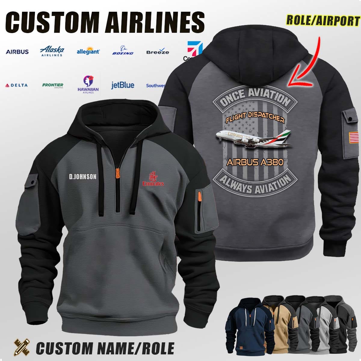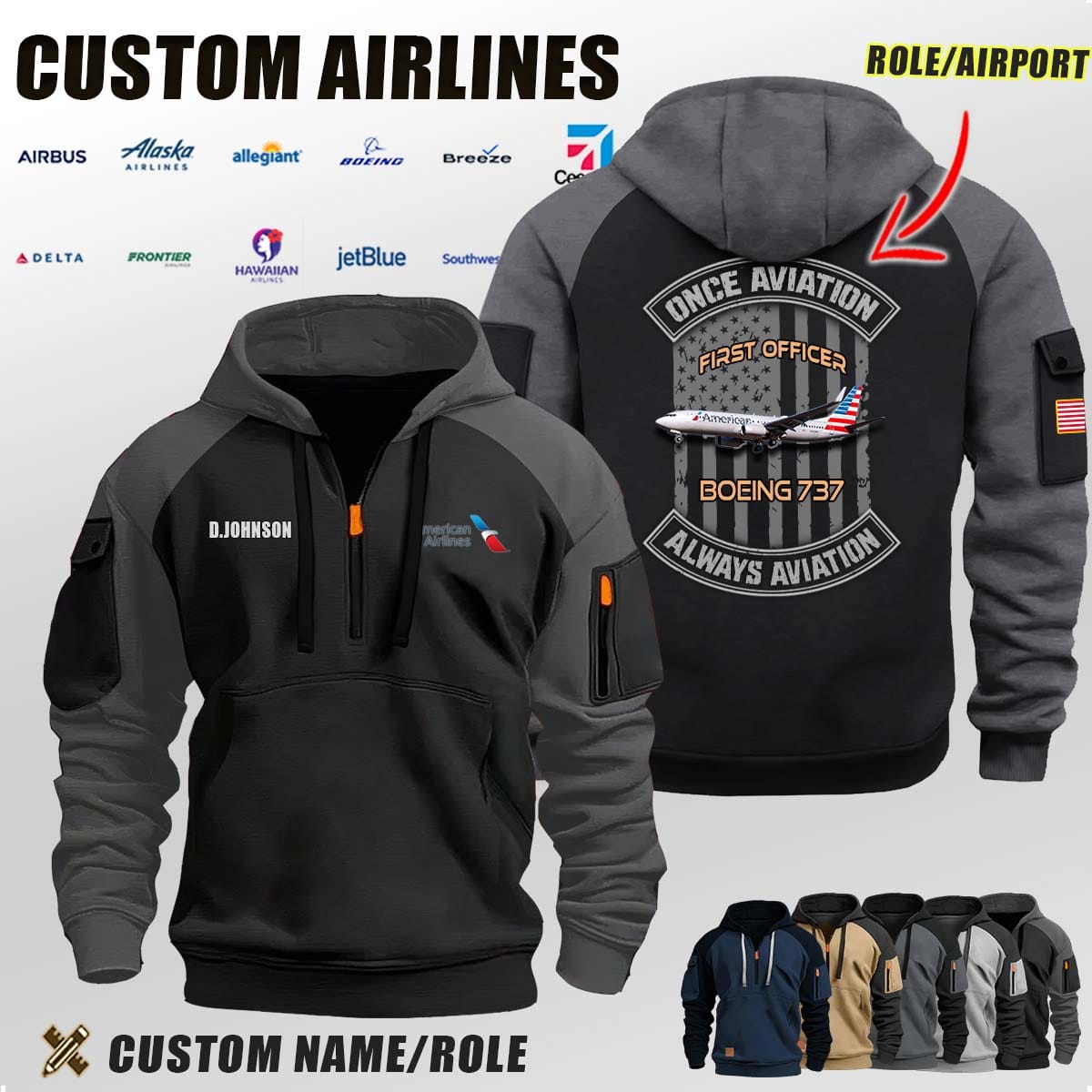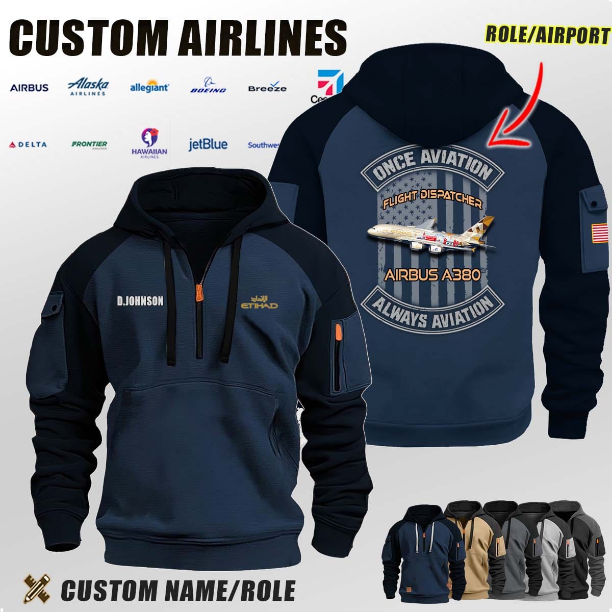 Custom US Airlines_Once Aviation Flag Halfzip Hoodie