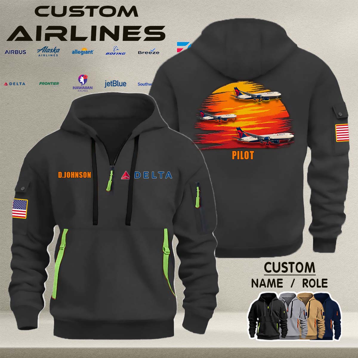 Custom US Airlines_V02 Sunset Quarter Zip Hoodie