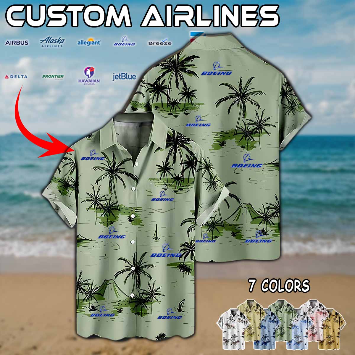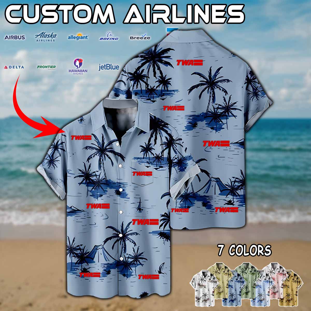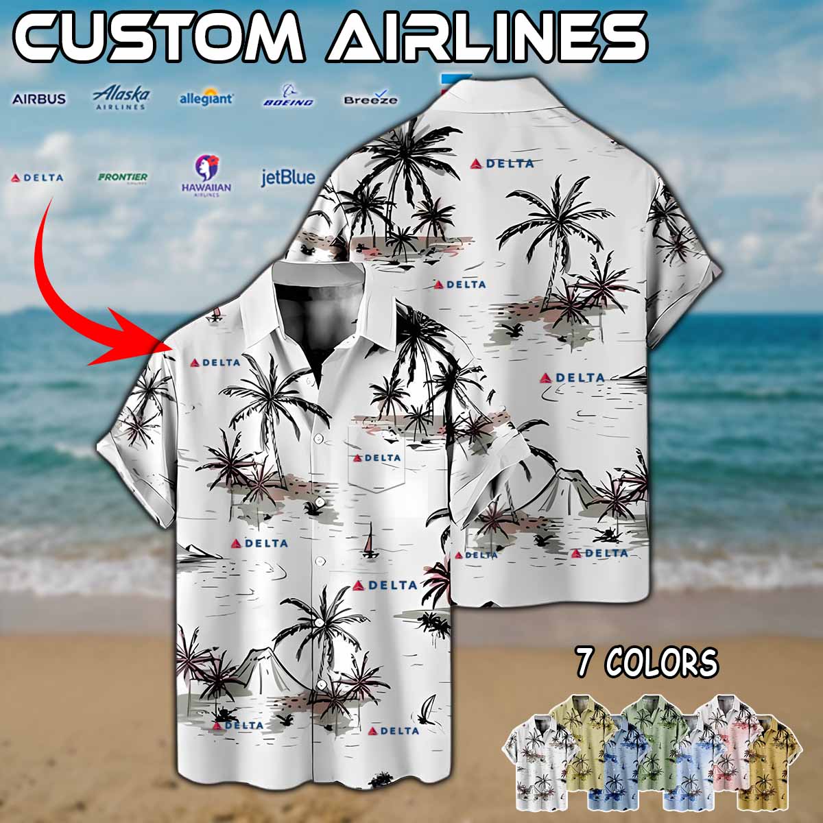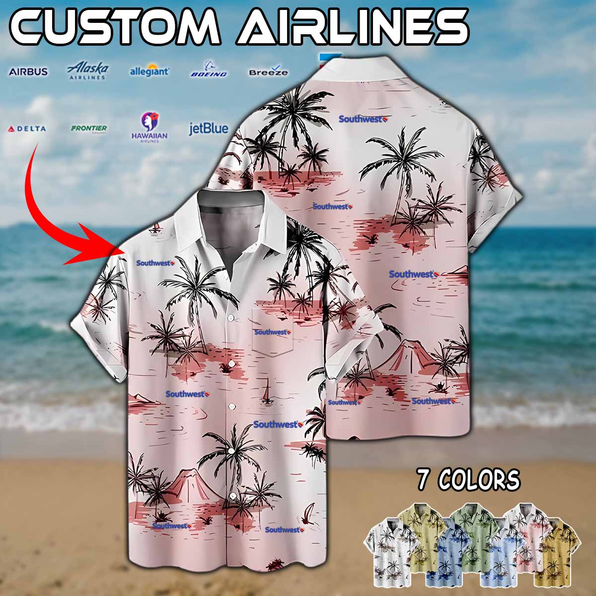 Imagine your airline — whether it’s Delta Air Lines, American Airlines, United Airlines, Southwest Airlines, Alaska Airlines, or JetBlue — proudly displayed on a stylish aviation-inspired linen button-up shirt.
