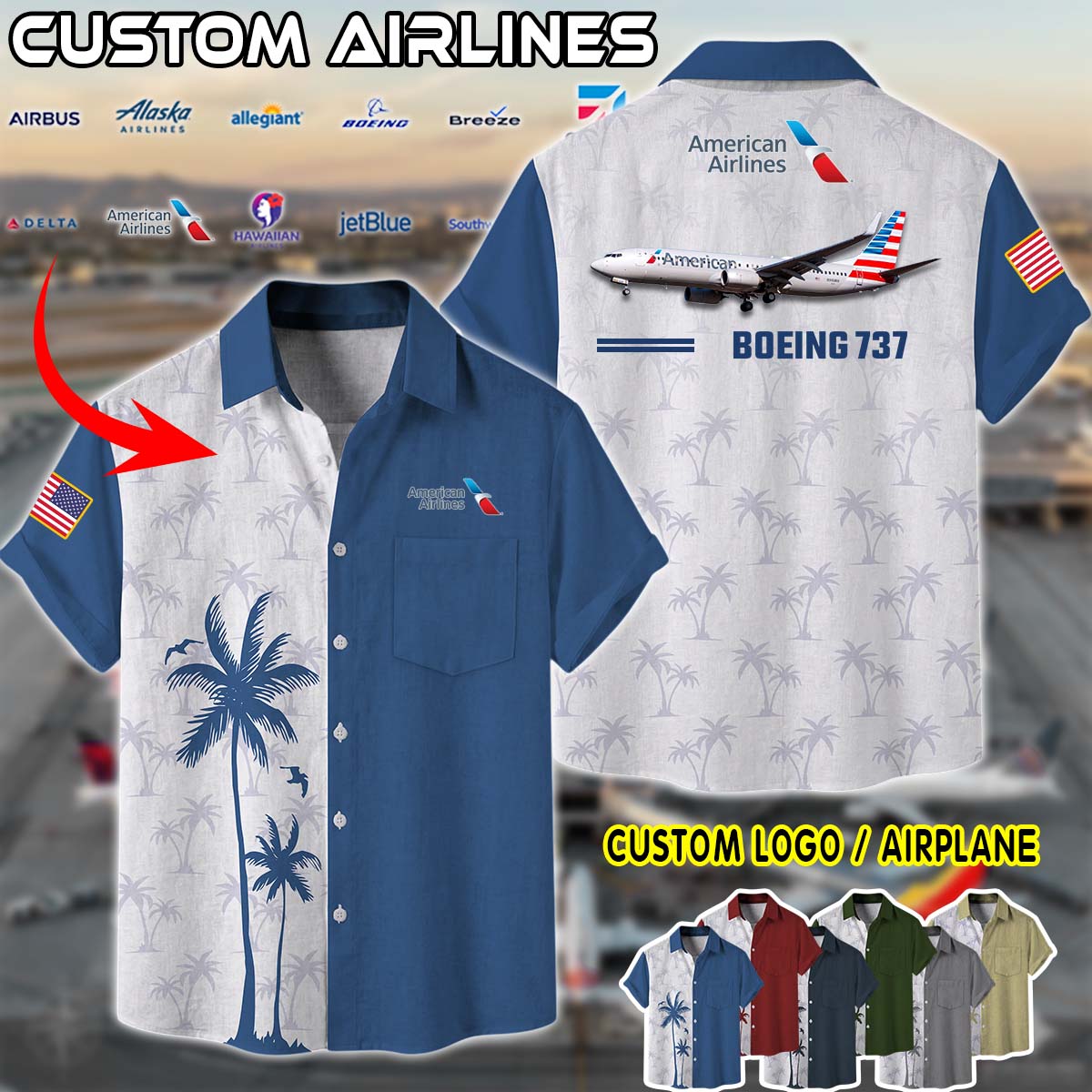 Imagine your airline — whether it’s Delta Air Lines, American Airlines, United Airlines, Southwest Airlines, Alaska Airlines, or JetBlue — proudly displayed on a stylish aviation-inspired linen button-up shirt.