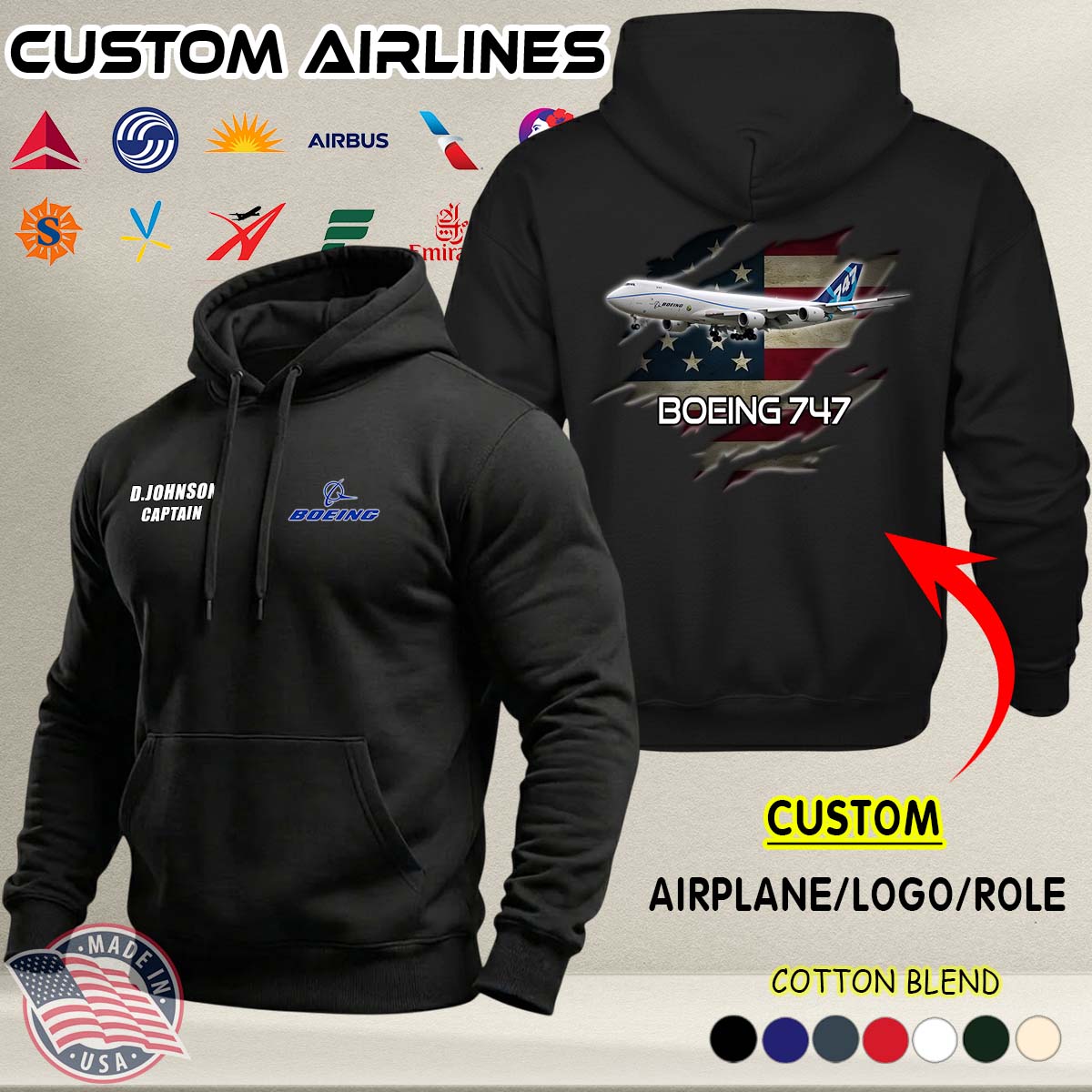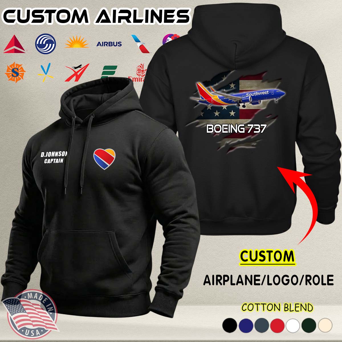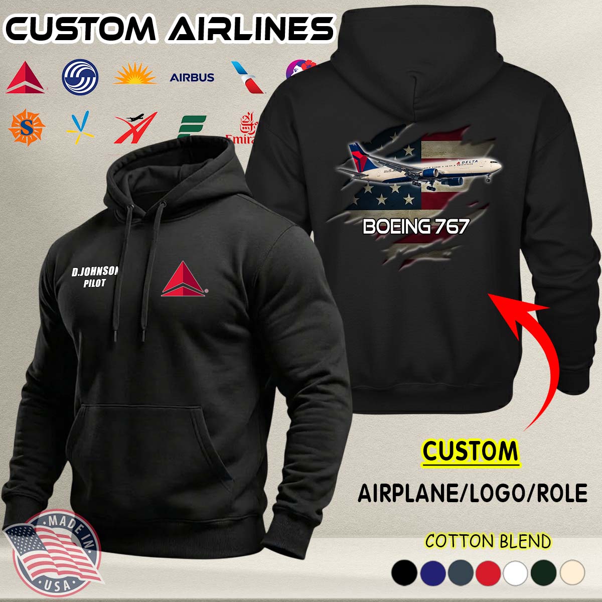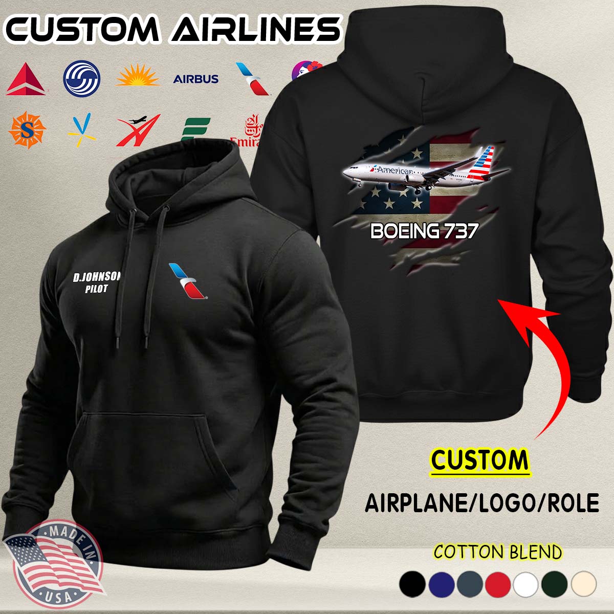 Custom US Airlines_Ver 1-1 A02 Cotton Hoodie