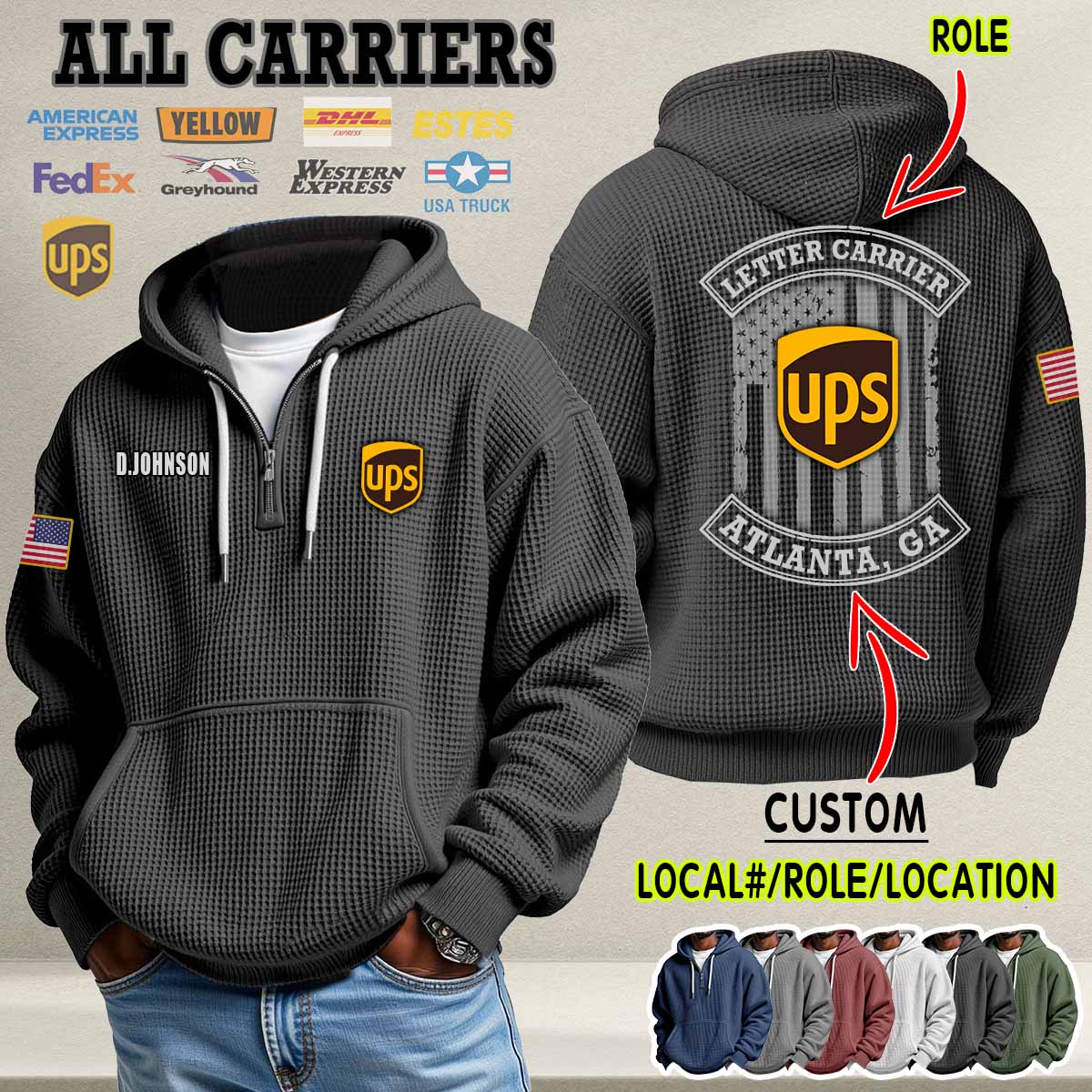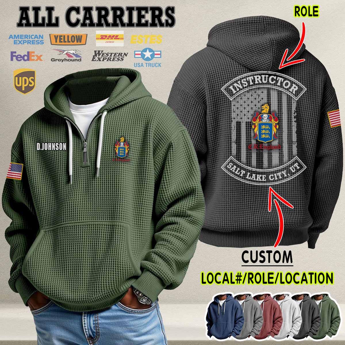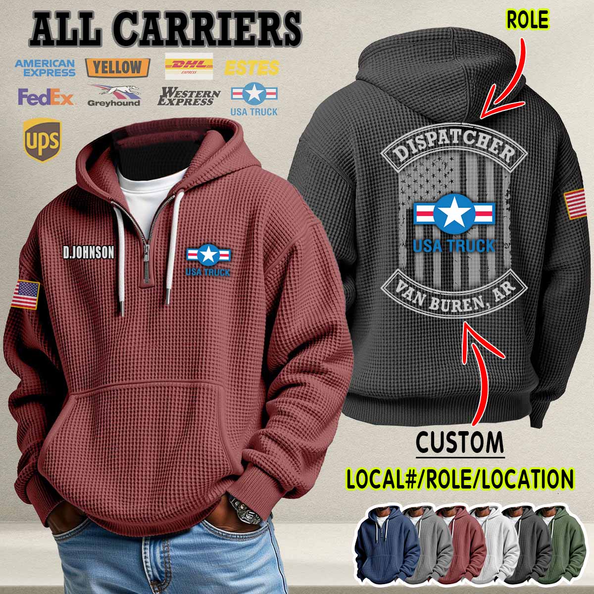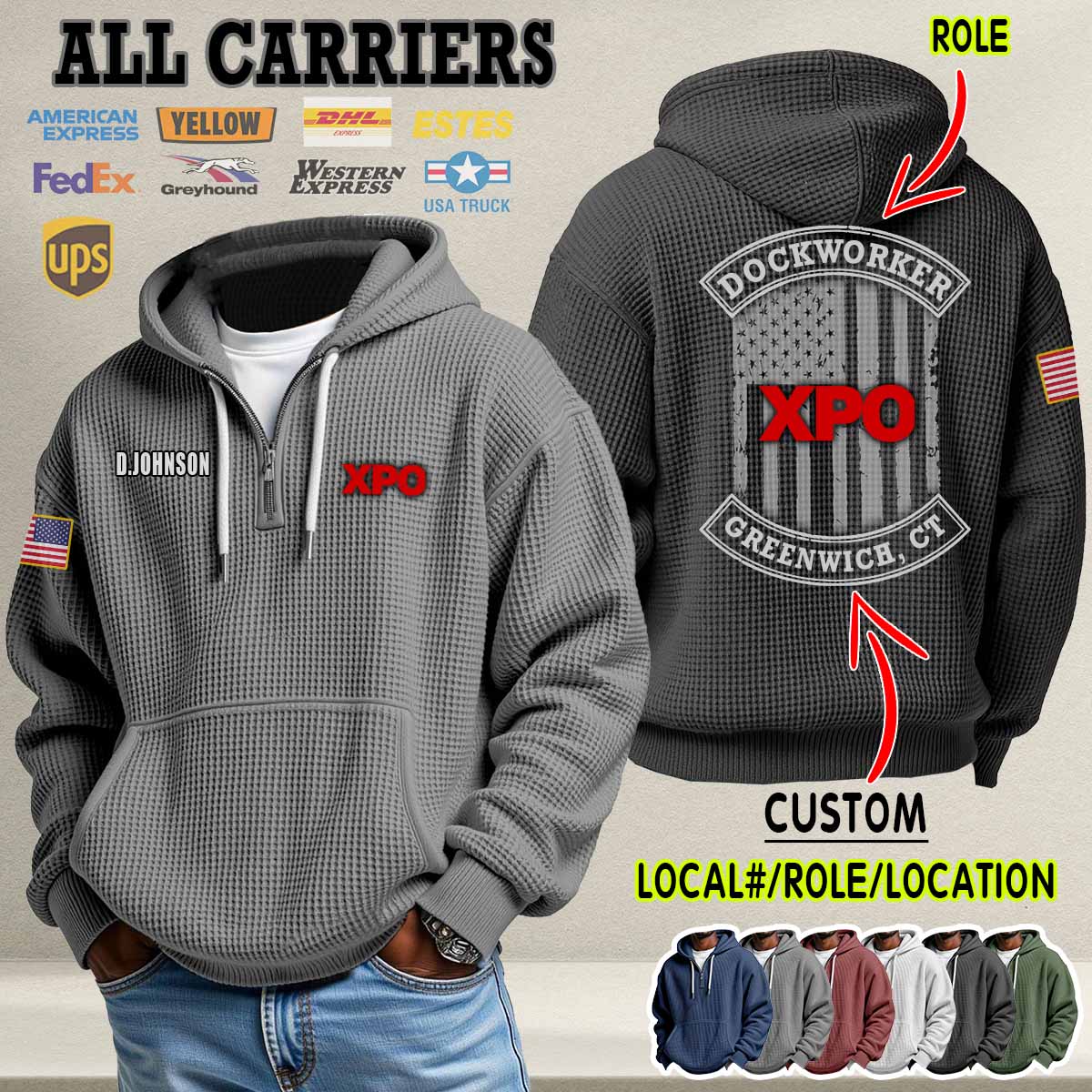 Custom US Carriers_Flag Waffle Hoodie