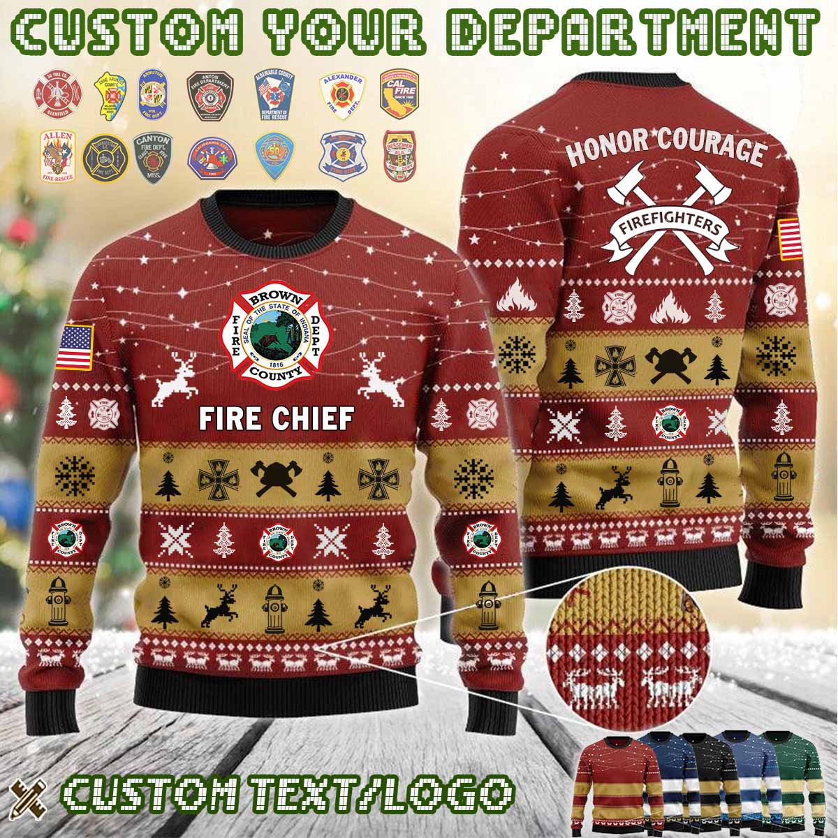 Custom US FireFighter_Honor Courage Ugly Christmas Sweater