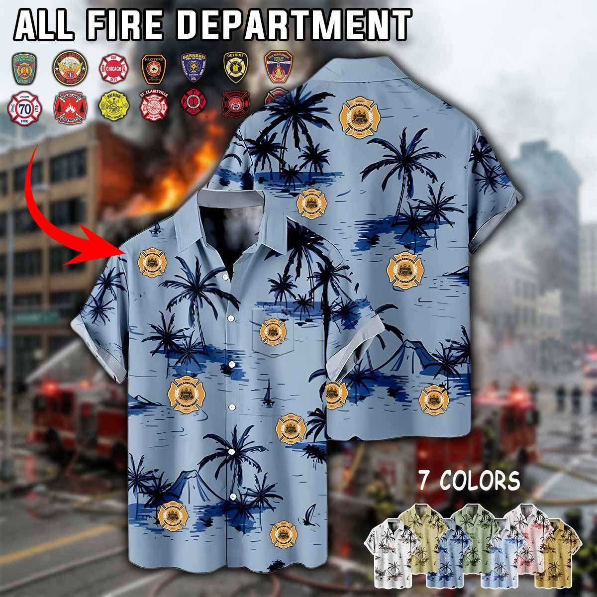 Imagine your department — whether it’s FDNY, CAL FIRE, Chicago Fire Department, Los Angeles Fire Department, or your local fire department — proudly displayed on a stylish firefighter-inspired linen button-up shirt.