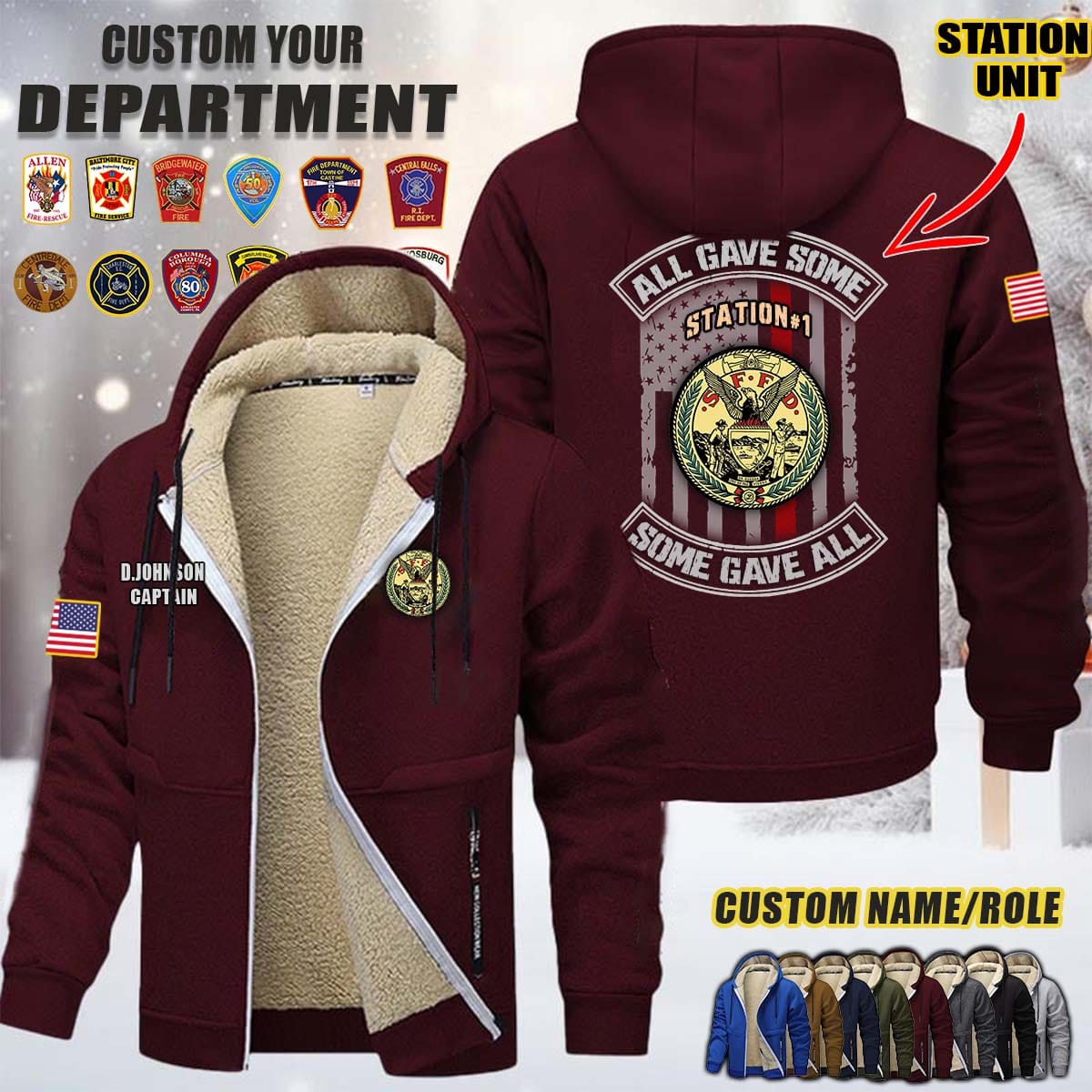 Custom US Firefighter_N1 All Gave Some Flag Fleece Zip Hoodie