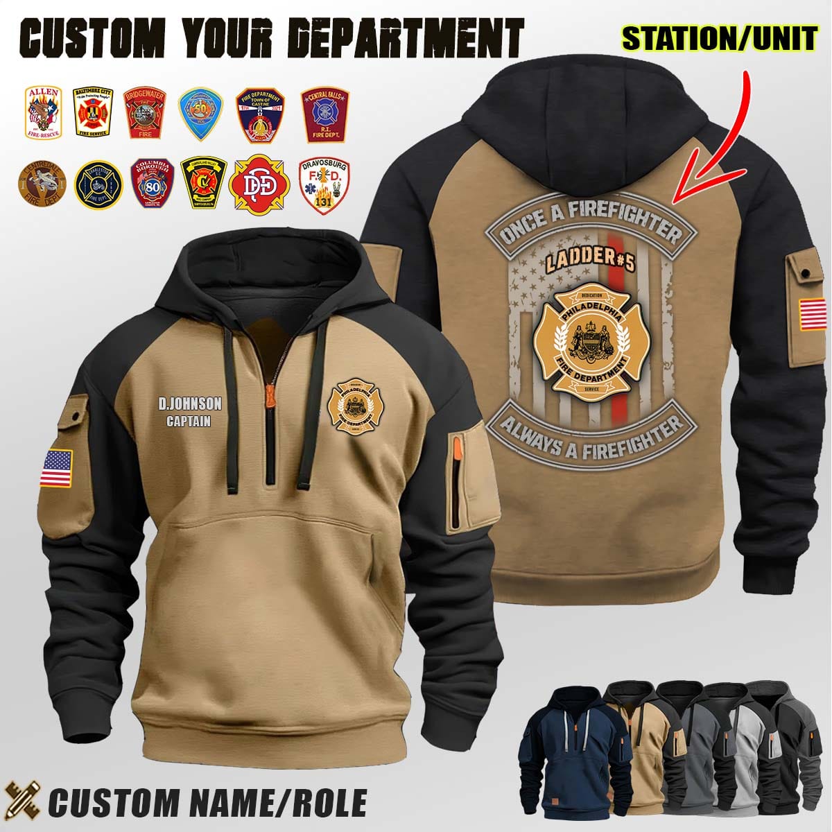 Custom US Firefighter_N1 Once A Firefighter Flag Halfzip Hoodie