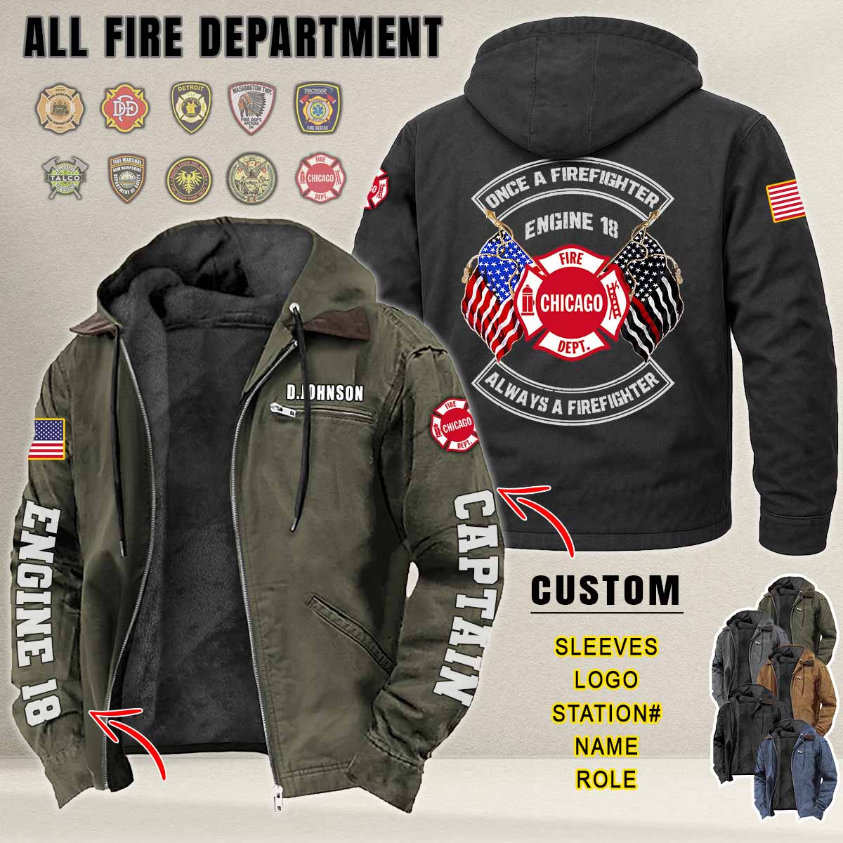 Custom US Firefighter_Once a Firefighter Dual Flag Premium Softshell Hoodie