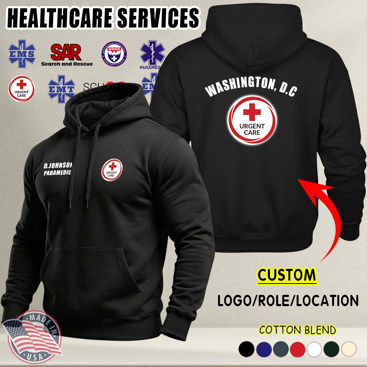 Custom US Healthcare Services_Ver 2 Cotton Hoodie
