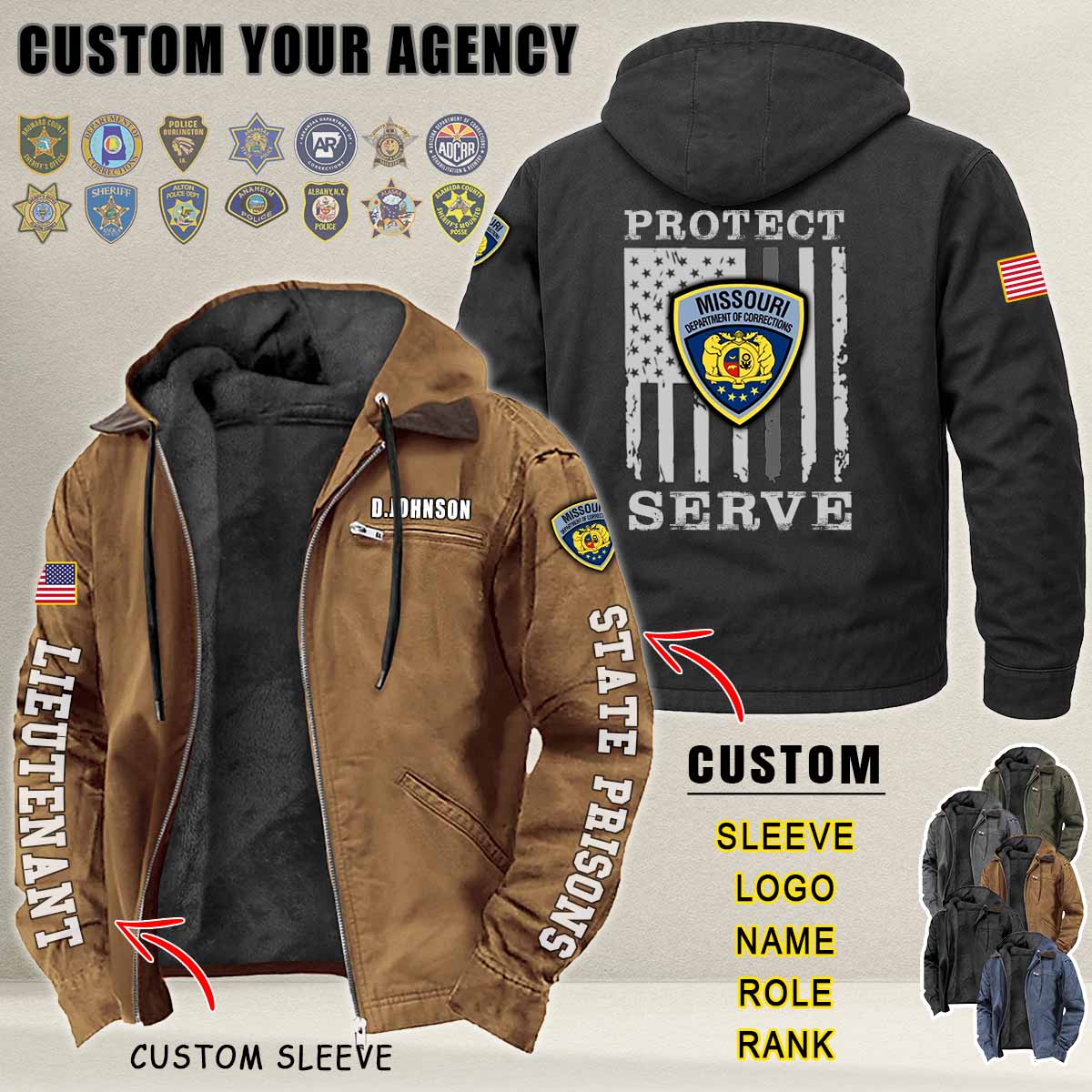 Custom US Law Enforcement_Protect Serve Flag Premium Softshell Hoodie