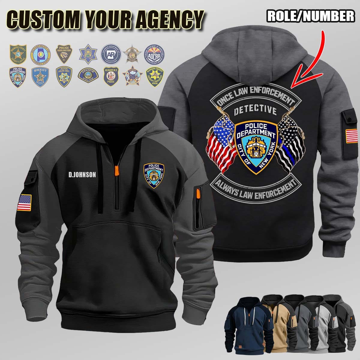 Custom US Law Enforcement_V1 Once Law Enforcement Dual Flag Halfzip Hoodie