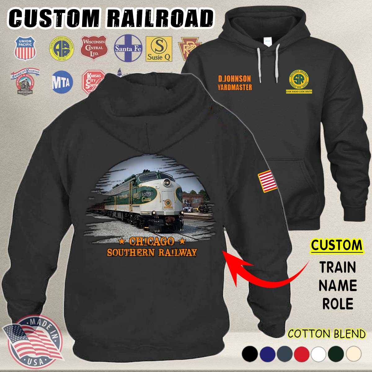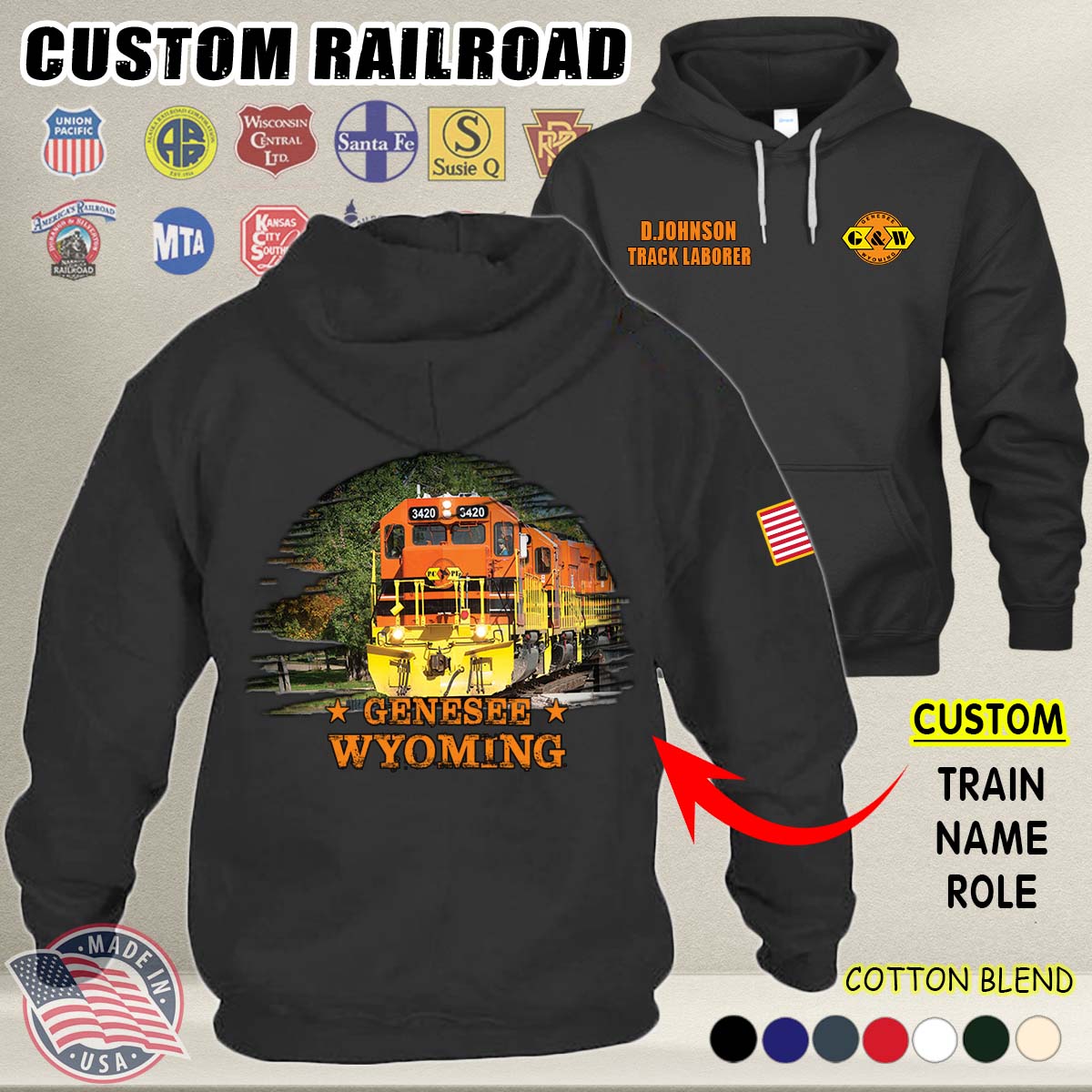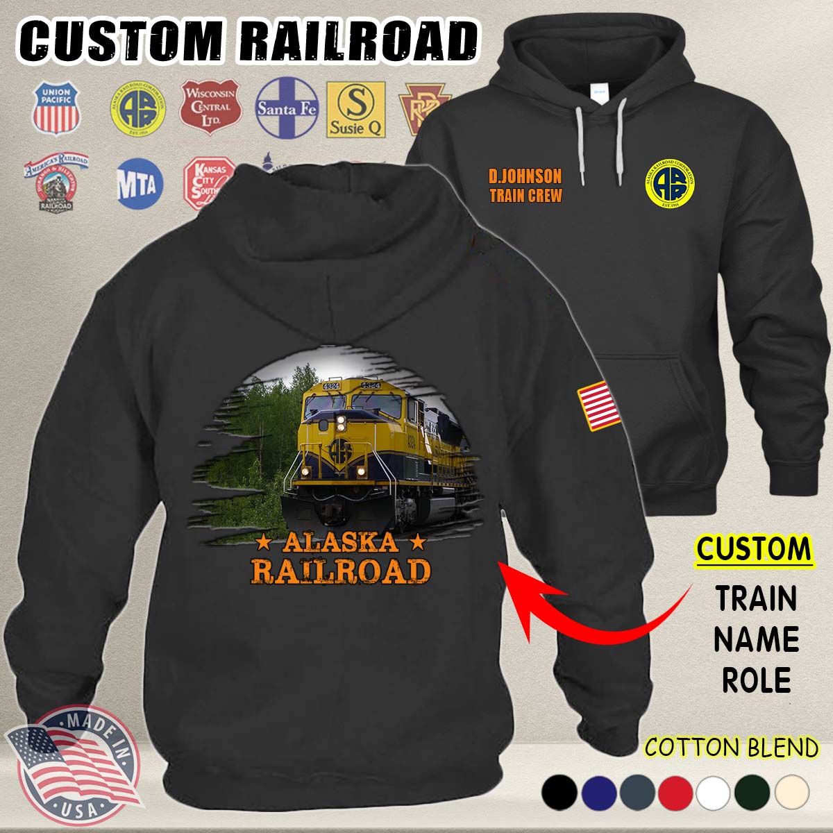 Custom US Railroad_V2 Cotton Hoodie