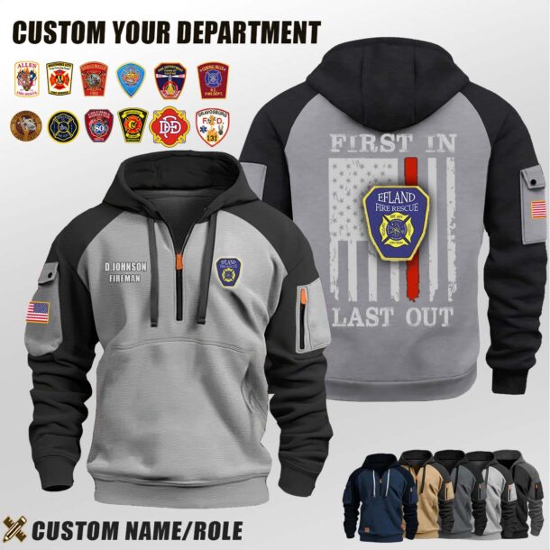 Introducing Efland Volunteer Fire Department NC_First In Last Out Halfzip Hoodie tailored specifically for men who appreciate both warmth and fashion.