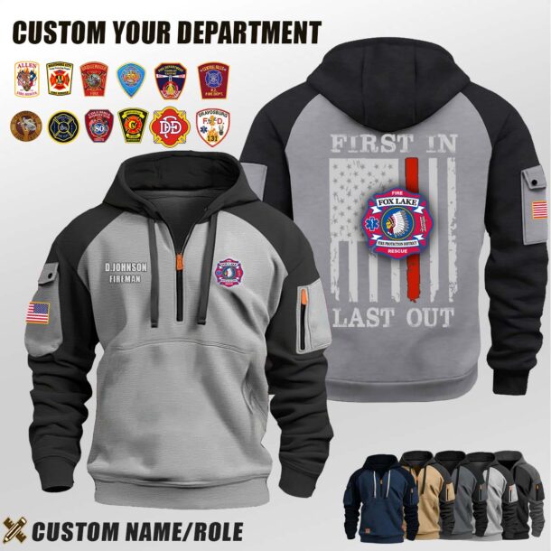 Introducing Fox Lake Volunteer Fire Department IL_First In Last Out Halfzip Hoodie tailored specifically for men who appreciate both warmth and fashion.
