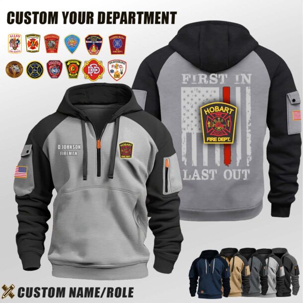 Introducing Hobart Fire Department IN_First In Last Out Halfzip Hoodie tailored specifically for men who appreciate both warmth and fashion.