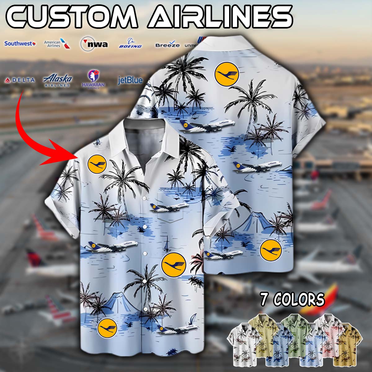 Imagine your airline – whether it’s Delta Air Lines, American Airlines, United Airlines, Southwest Airlines, Alaska Airlines, or JetBlue – proudly displayed on a stylish aviation-inspired linen button-up shirt.