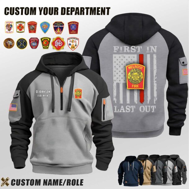 Introducing Melrose Fire Department NY_First In Last Out Halfzip Hoodie tailored specifically for men who appreciate both warmth and fashion.