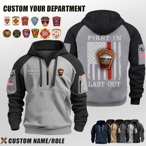 Introducing Middleton NH Fire & Rescue NH_First In Last Out Halfzip Hoodie tailored specifically for men who appreciate both warmth and fashion.