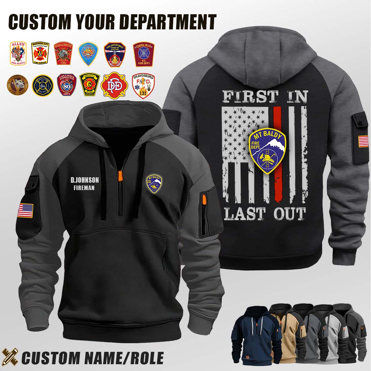 Introducing Mt Baldy Fire Department CA_First In Last Out Halfzip Hoodie tailored specifically for men who appreciate both warmth and fashion.