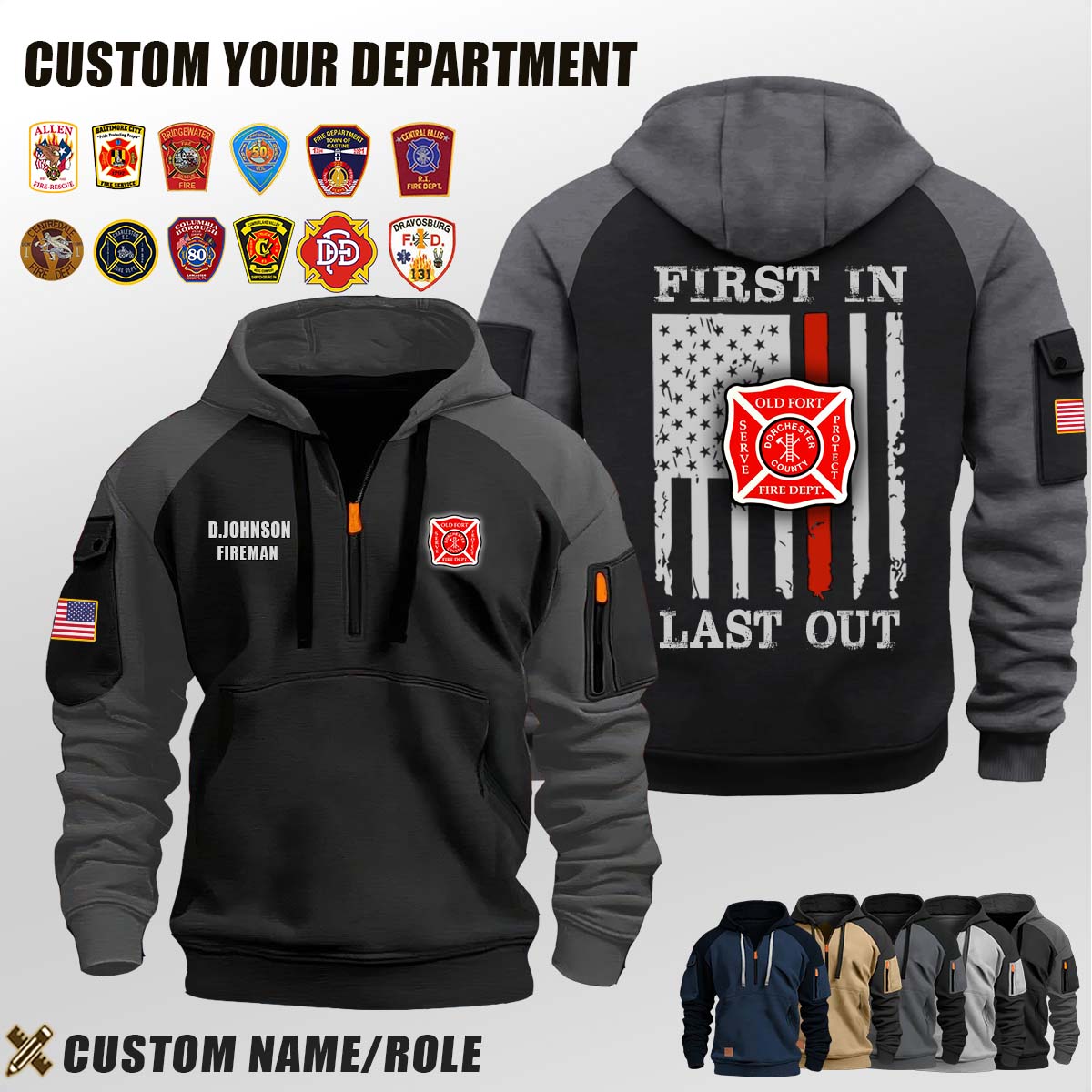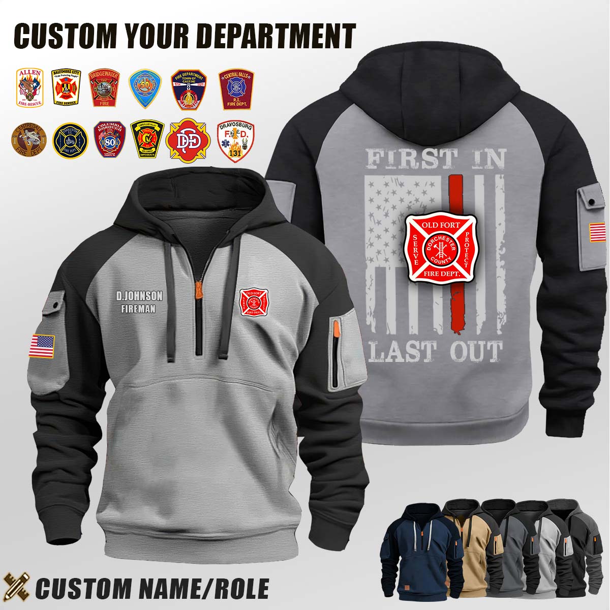Introducing Old Fort Fire Department SC_First In Last Out Halfzip Hoodie tailored specifically for men who appreciate both warmth and fashion.