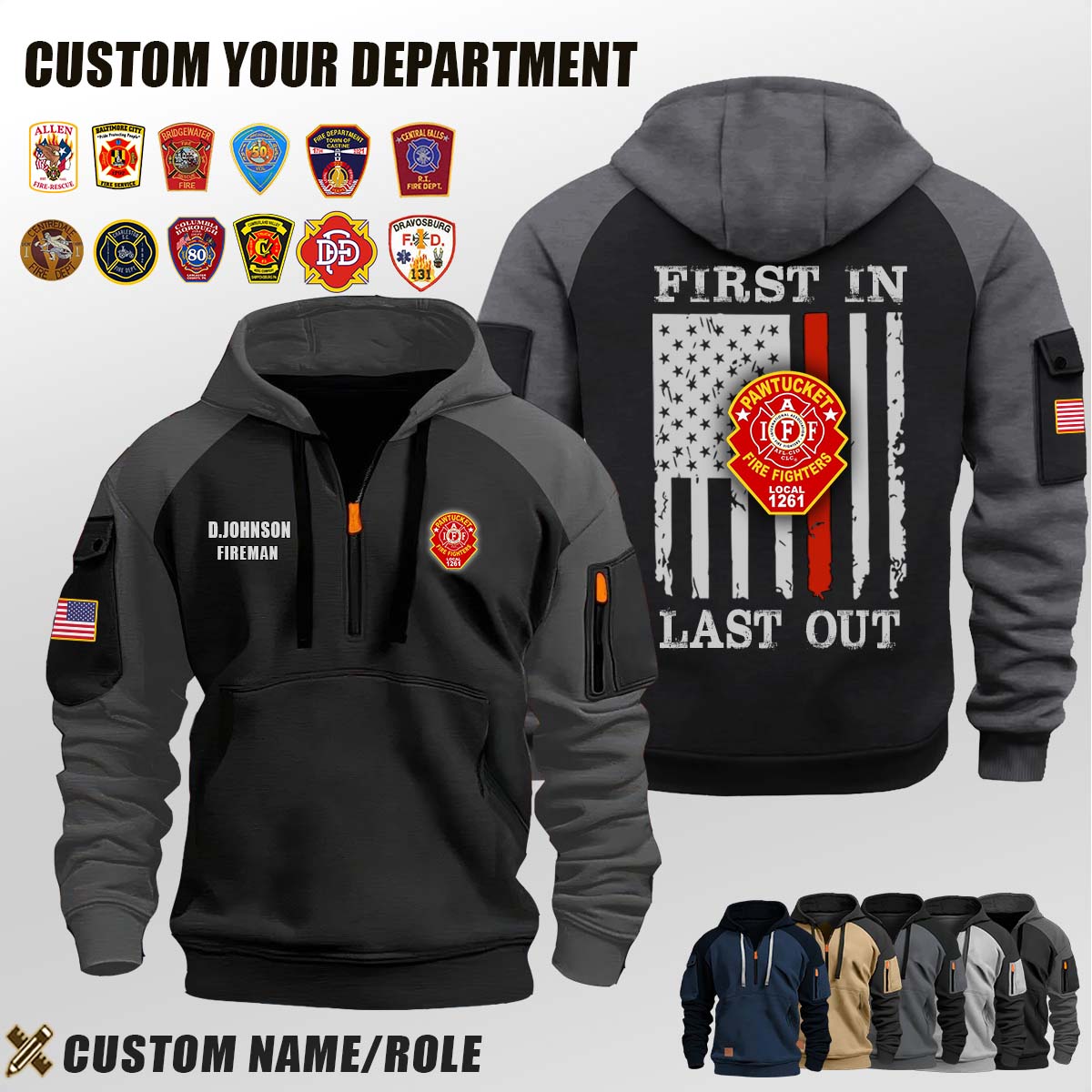 Introducing Pawtucket Fire Department RI_First In Last Out Halfzip Hoodie tailored specifically for men who appreciate both warmth and fashion.