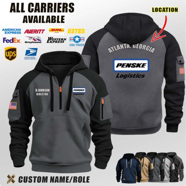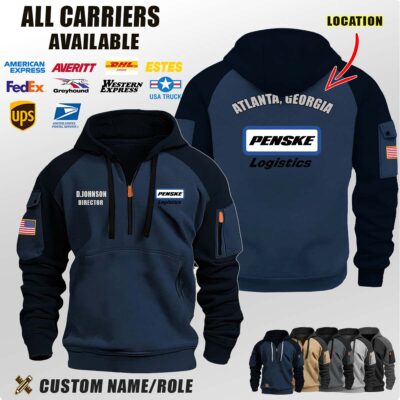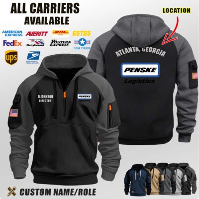 Introducing Penske Logistics_Location Halfzip Hoodie tailored specifically for men who appreciate both warmth and fashion.