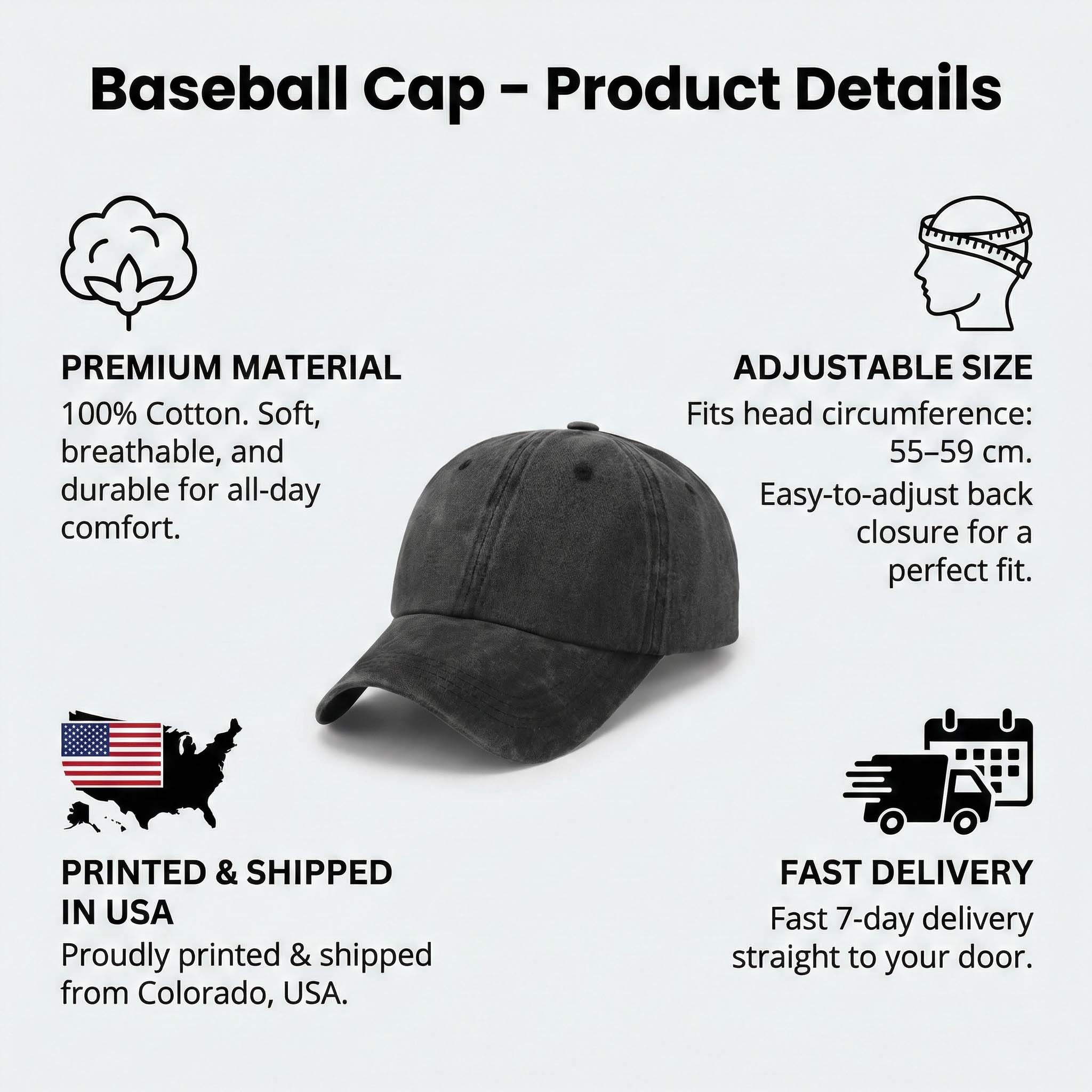 The curved brim helps protect your face from the sun, while the classic baseball cap shape adds a sporty and casual touch. Suitable for daily use, outdoor activities, travel, or streetwear styling.