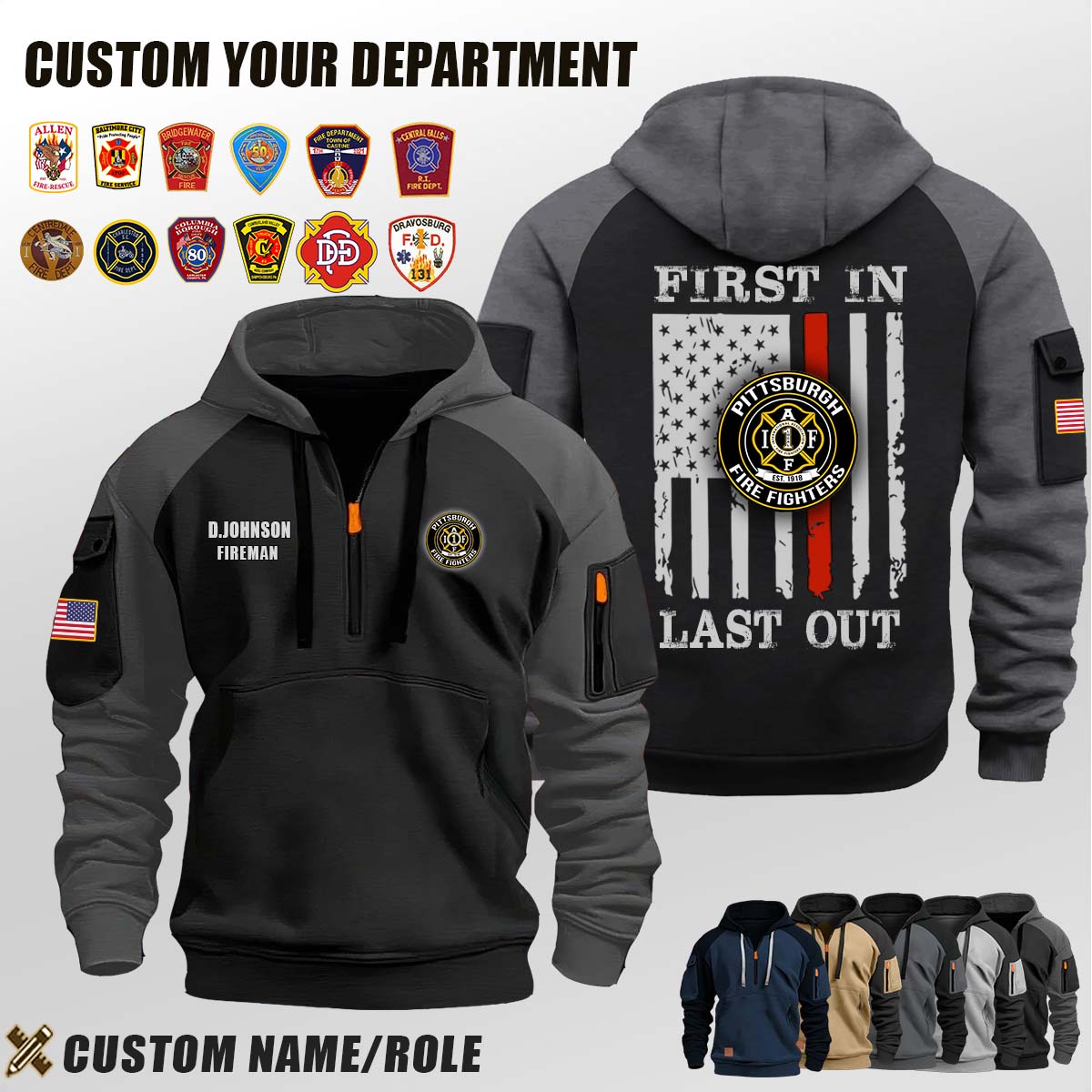 Introducing Pittsburgh Fire Fighters PA_First In Last Out Halfzip Hoodie tailored specifically for men who appreciate both warmth and fashion.
