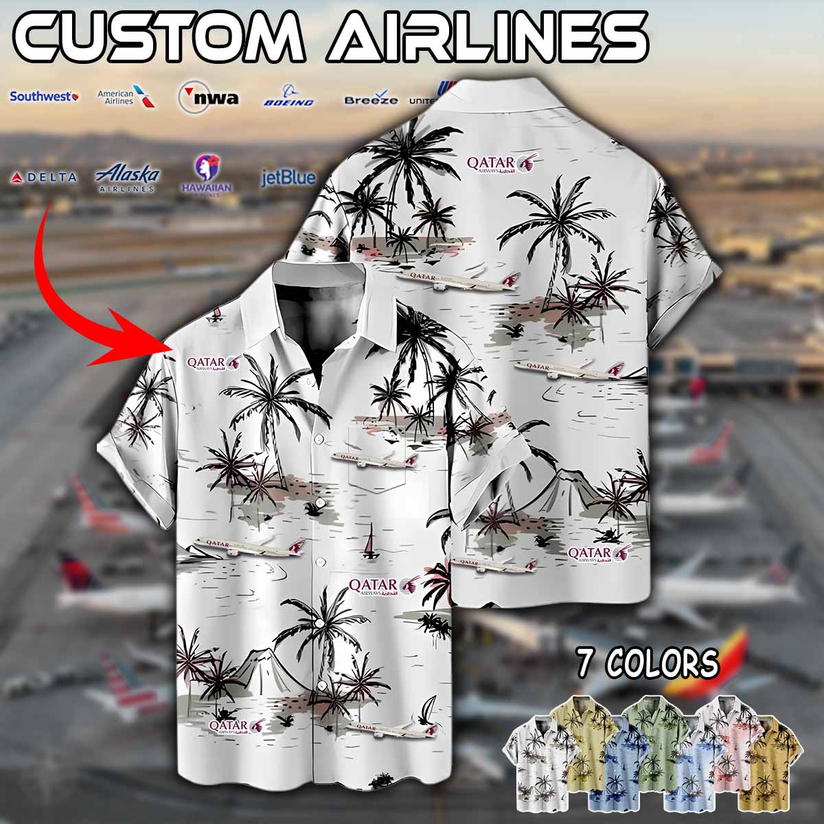 Imagine your airline – whether it’s Delta Air Lines, American Airlines, United Airlines, Southwest Airlines, Alaska Airlines, or JetBlue – proudly displayed on a stylish aviation-inspired linen button-up shirt.