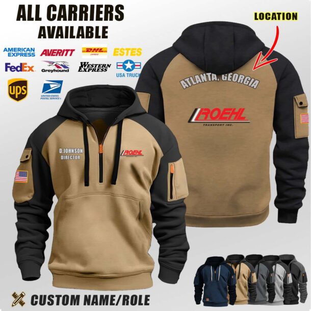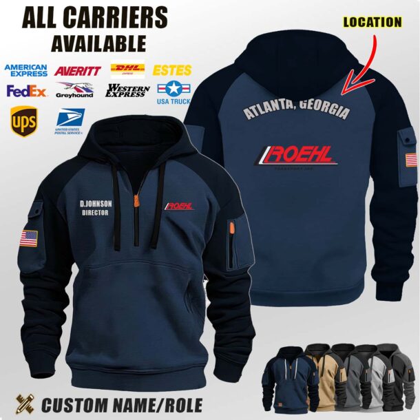 Introducing Roehl Transport Inc_Location Halfzip Hoodie tailored specifically for men who appreciate both warmth and fashion.