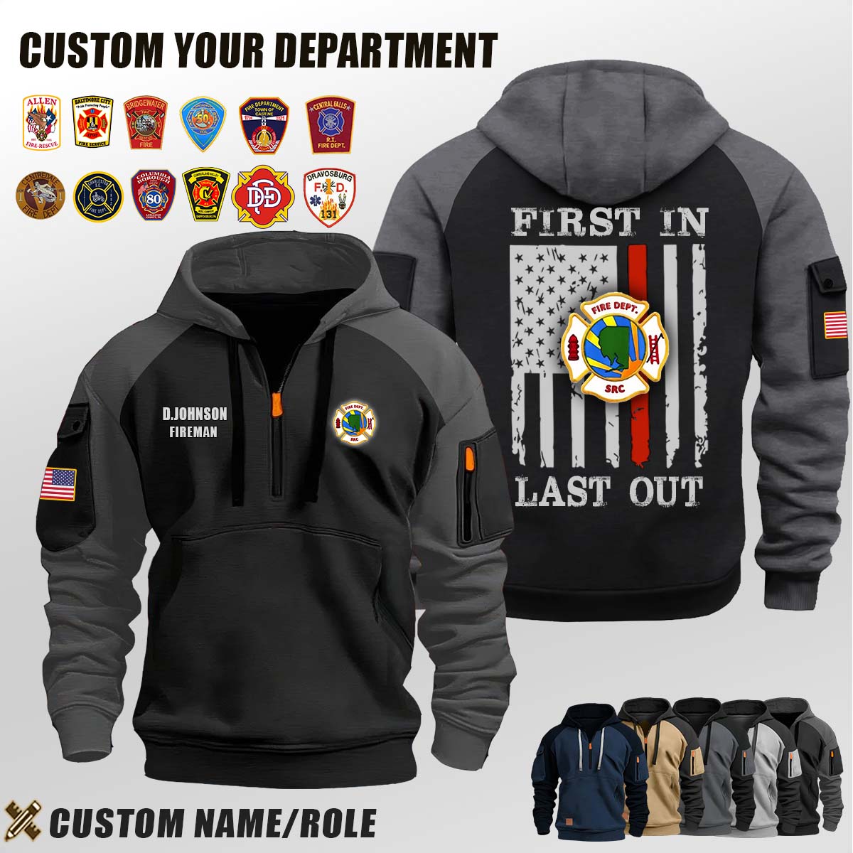Introducing Santa Rosa County Fire Departments FL_First In Last Out Halfzip Hoodie tailored specifically for men who appreciate both warmth and fashion.