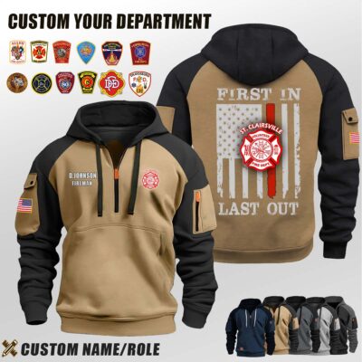 Introducing St. Clairsville Volunteer Fire Department_First In Last Out Halfzip Hoodie tailored specifically for men who appreciate both warmth and fashion.