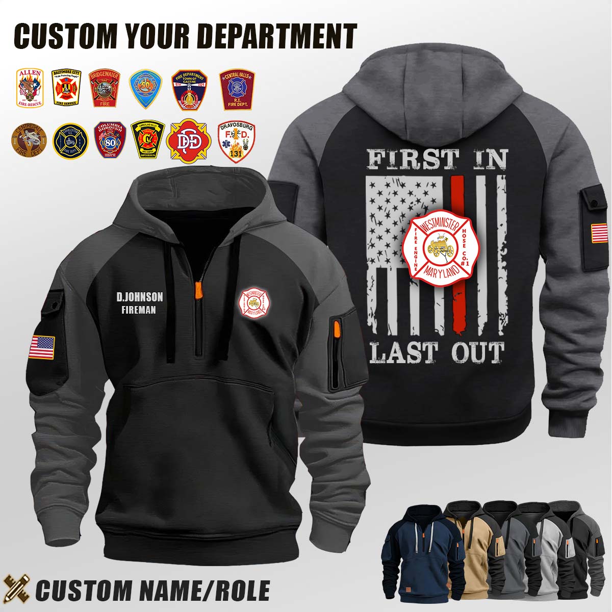 Westminster Fire Engine and Hose Co. No. 1 MD_First In Last Out Halfzip Hoodie